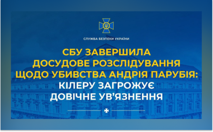 Служба безпеки України завершила досудове розслідування у справі про вбивство народного депутата України та колишнього голови Верховної Ради Андрія Парубія. Обвинувальний акт стосовно підозрюваного скеровано до суду. Йому загрожує довічне позбавлення волі з конфіскацією майна.