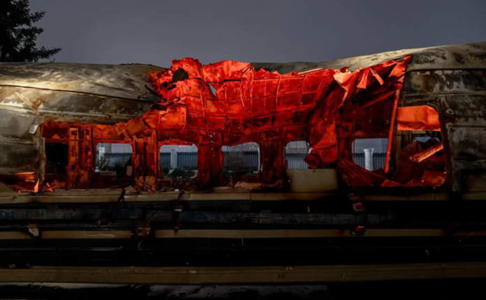 Митець із Дніпра перетворив вагон, знищений ворожим БпЛА, на артінсталяцію