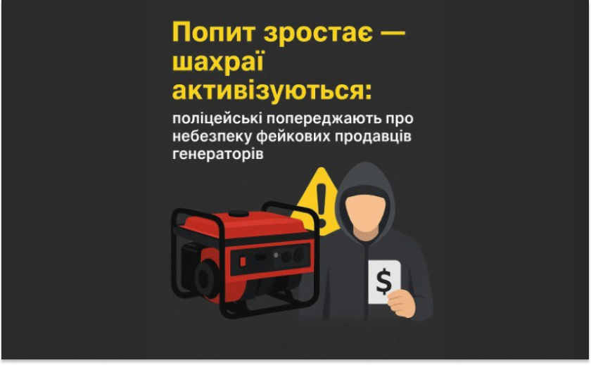 У зв’язку з масованими обстрілами українських міст та атаками на енергетичну інфраструктуру значно зріс попит на генератори. Водночас поліція фіксує збільшення кількості шахрайських схем, спрямованих на ошуканство громадян.