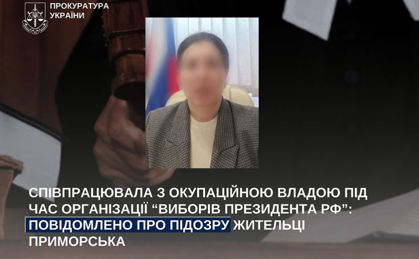 Прокурори Бердянської окружної прокуратури заочно повідомили про підозру мешканці тимчасово окупованого Приморська за ч. 6 ст. 111-1 КК України (колабораційна діяльність).