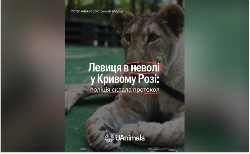 У Кривому Розі поліцейські зафіксували порушення умов утримання левиці