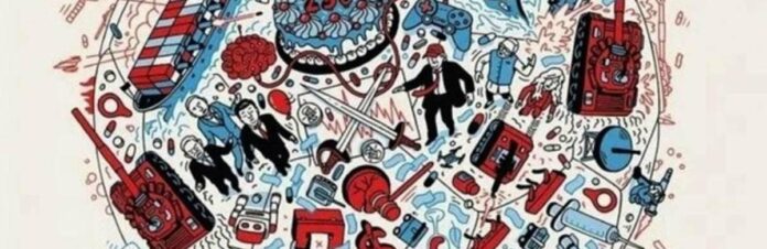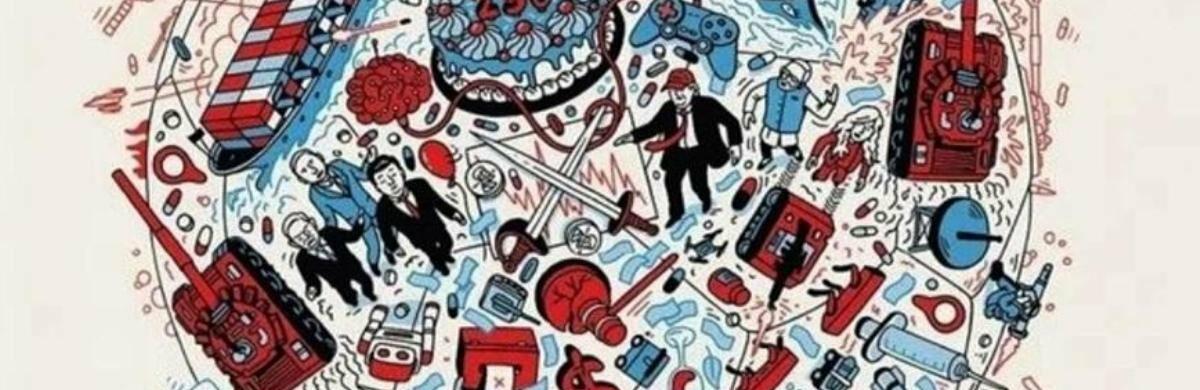 Цього разу на обкладинці – все впереміш: човен вікінгів, суховантаж із гарматами, таблетки й шприци, мозок із геймпадом, дрони, танки, світові лідери. Серед них і президент України Володимир Зеленський – у позі, яка викликає більше запитань, ніж відповідей.