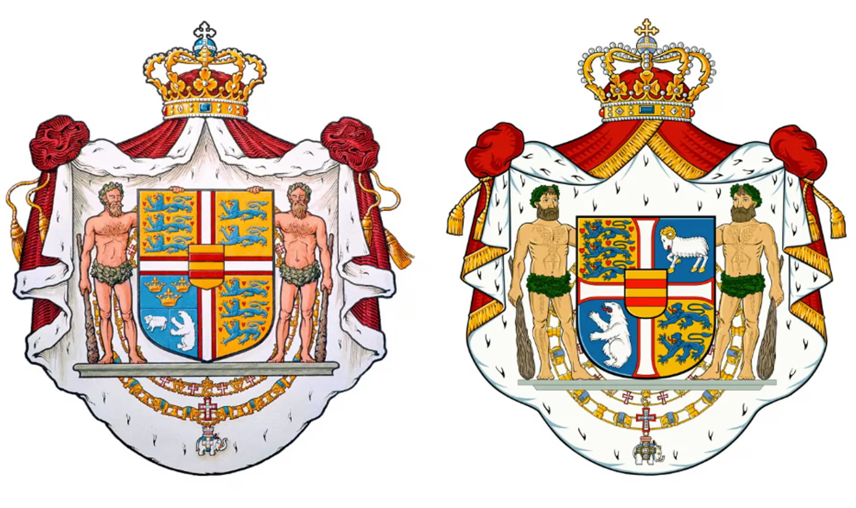 Однак в оновленій версії корони були видалені і замінені більш помітними, ніж раніше – білим ведмедем і бараном, які символізують Гренландію і Фарерські острови відповідно.