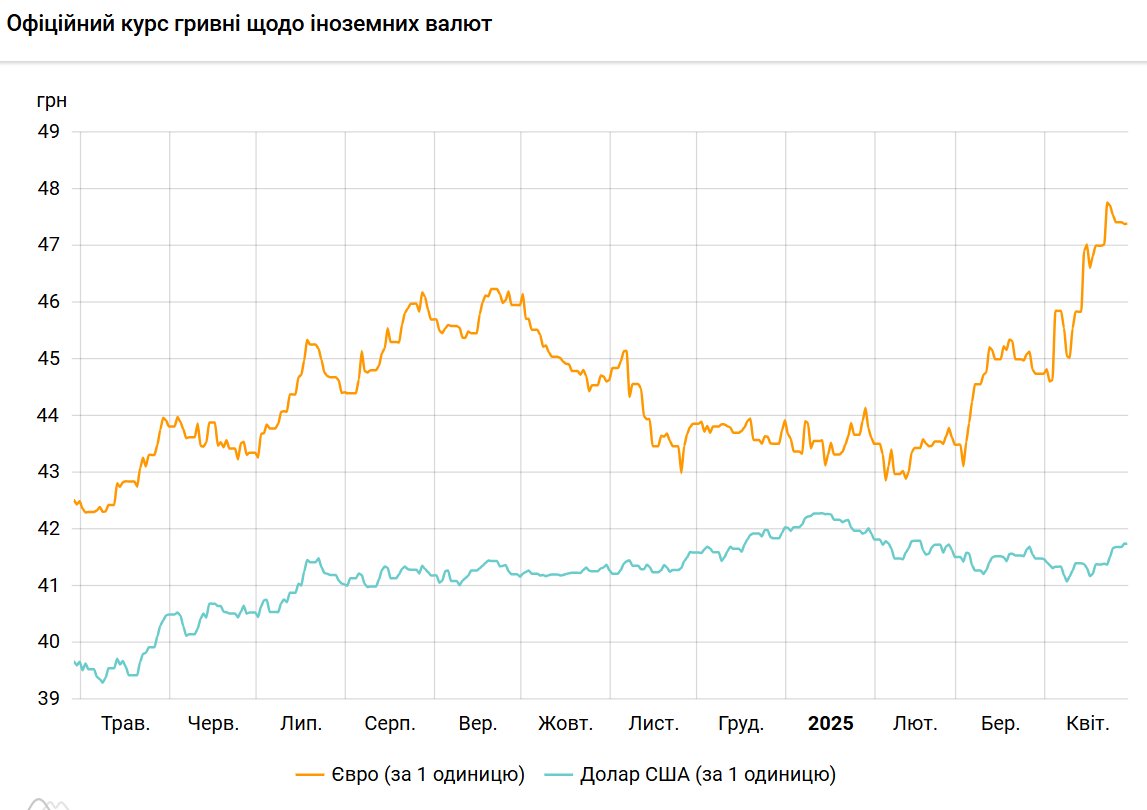 Офіційний курс євро становитиме 47,3921 гривень за 1 євро (+0,0065 грн).