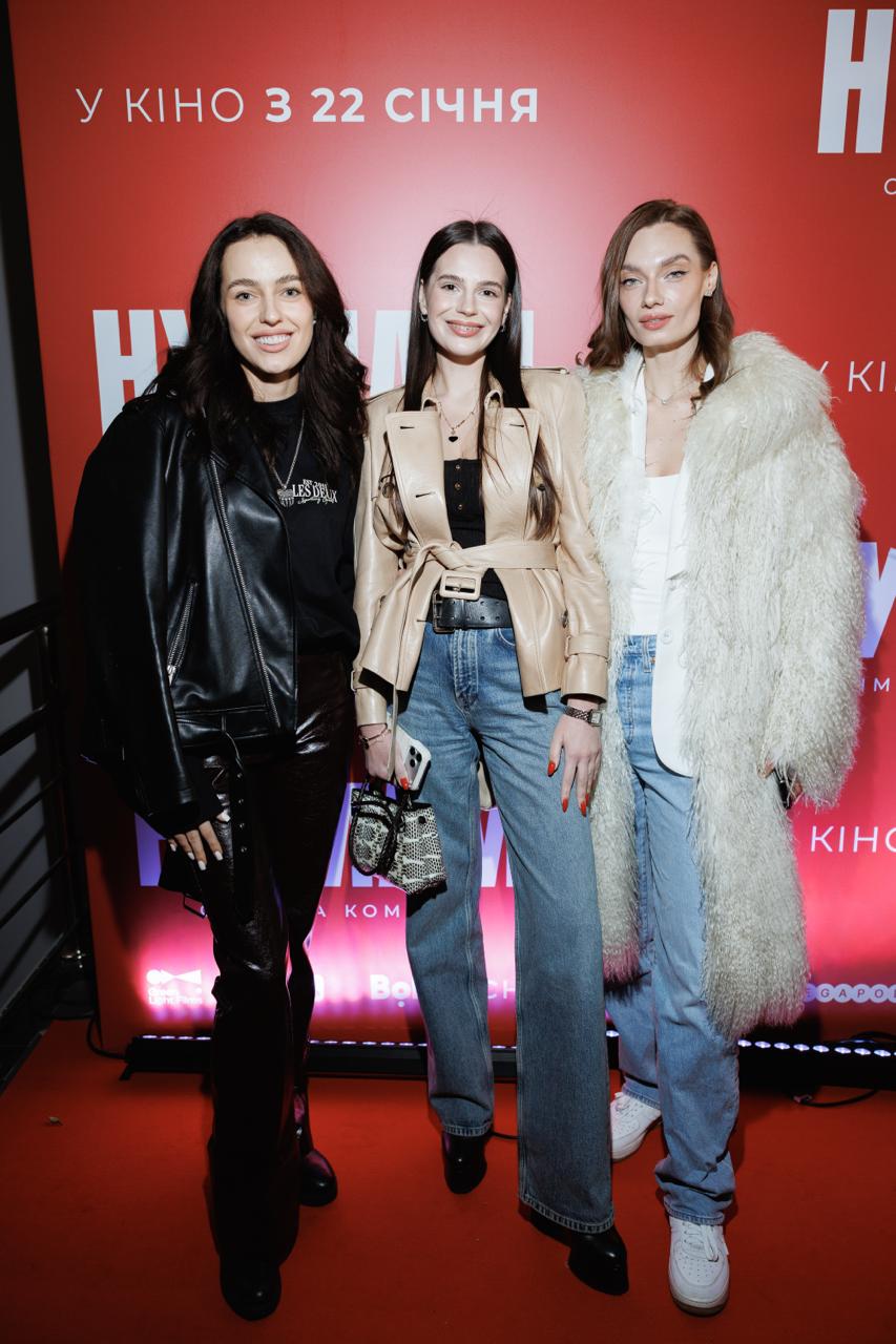 Тріо модниць показало дуже різні зимові образи. Учасниця "Холостяка" з Тереном Ксенія прийшла на прем'єру у у total-black зі шкіряним блиском, який завжди виглядає актуально на подіях.