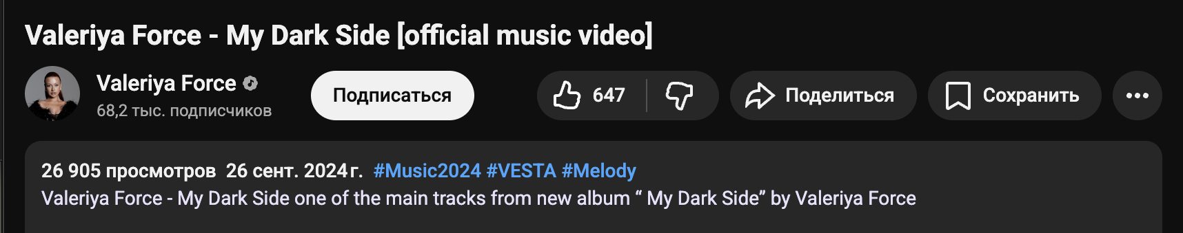 Саме під таким псевдонімом, як звернули увагу користувачі, раніше виступала Valeriya Force – це можна помітити на її YouTube-каналі.