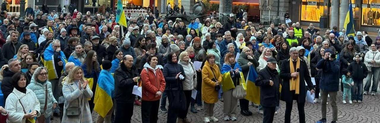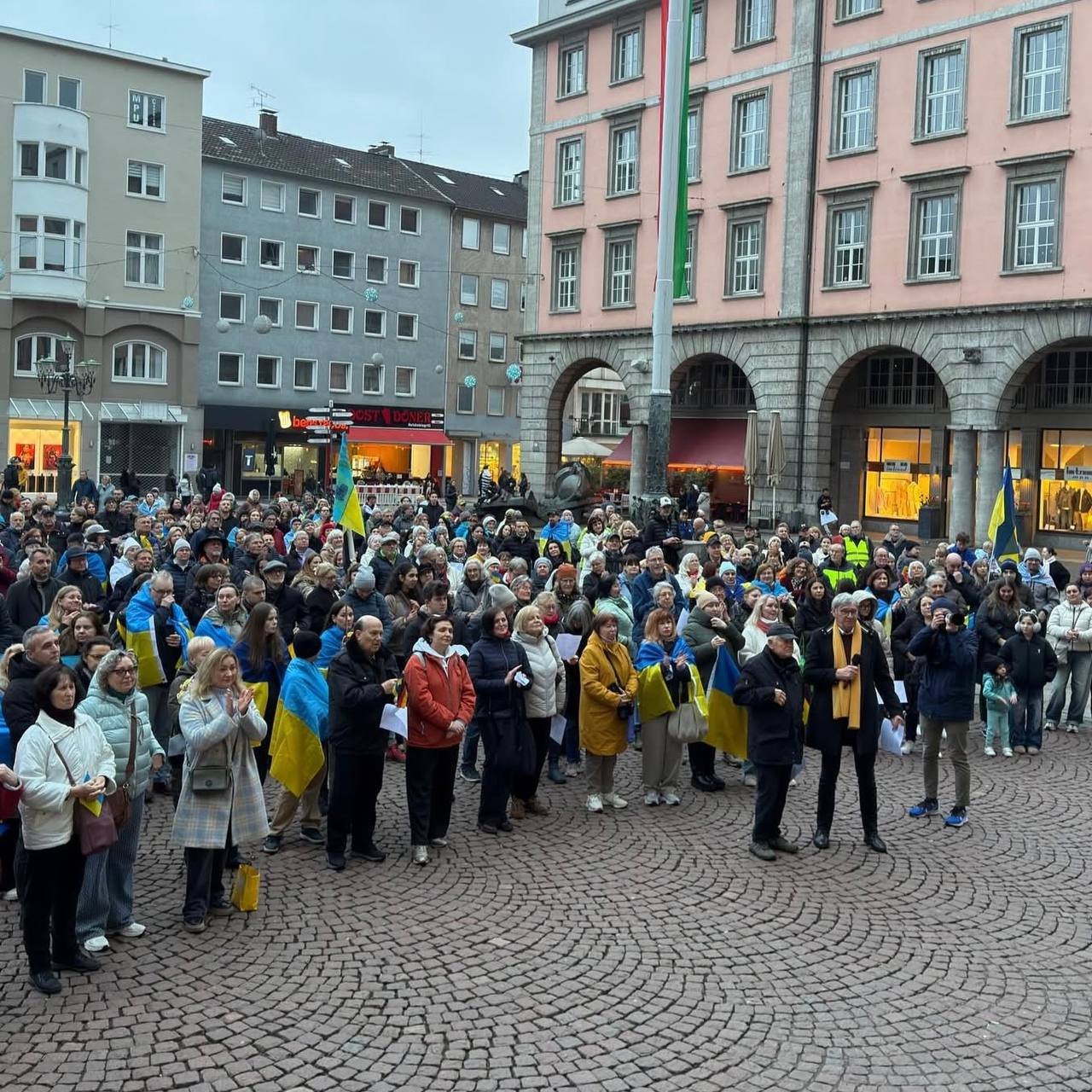 У четверту річницю повномасштабної війни громада нашого міста-побратима – Вупперталя – провела мітинг солідарності на площі Беллеротхаузу та спільну молитву за Україну і Кам’янське у місцевій церкві.