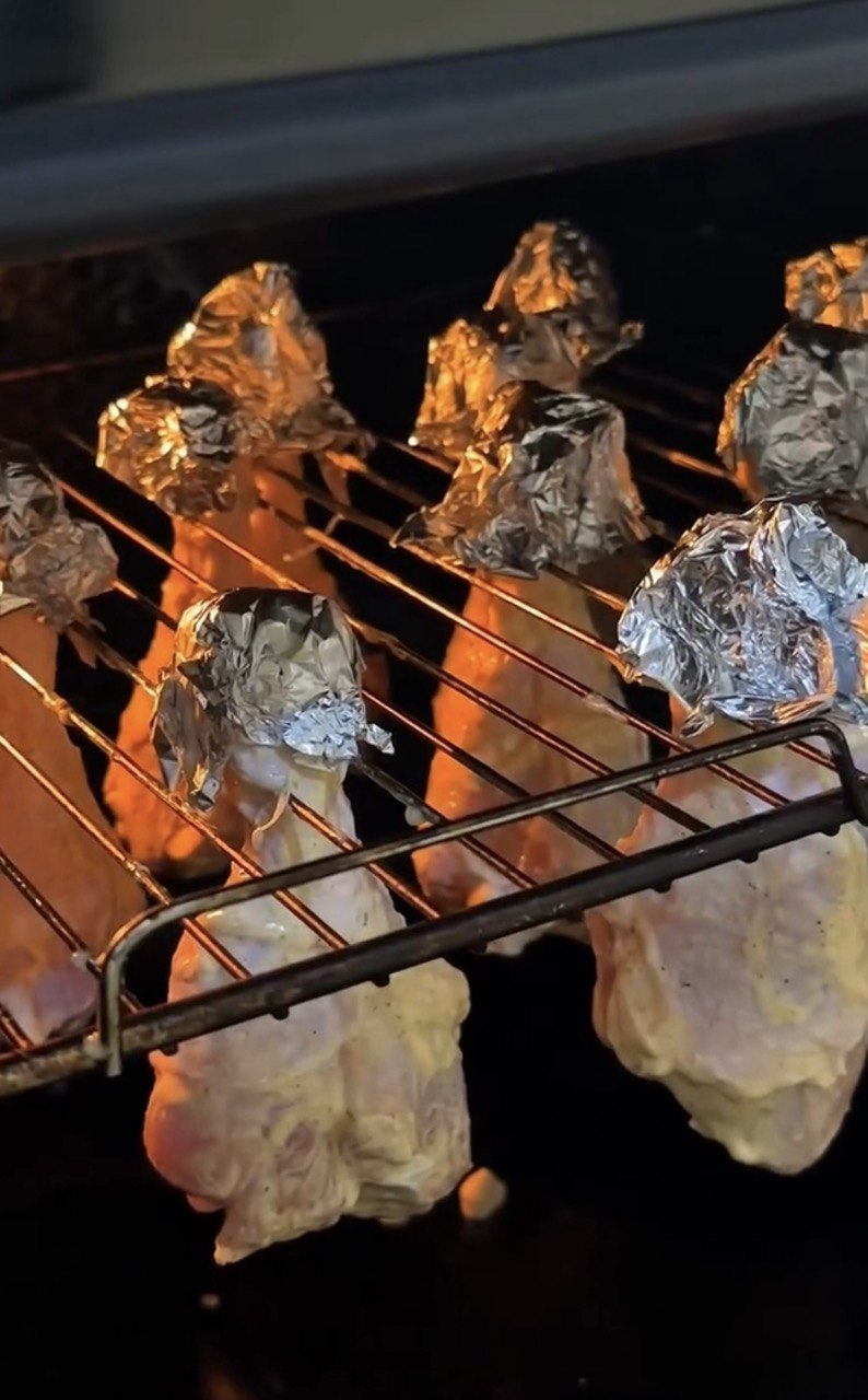 Підвісьте гомілки на решітку в духовці так, як показано на фото. Духовка обовʼязково має бути холодною.