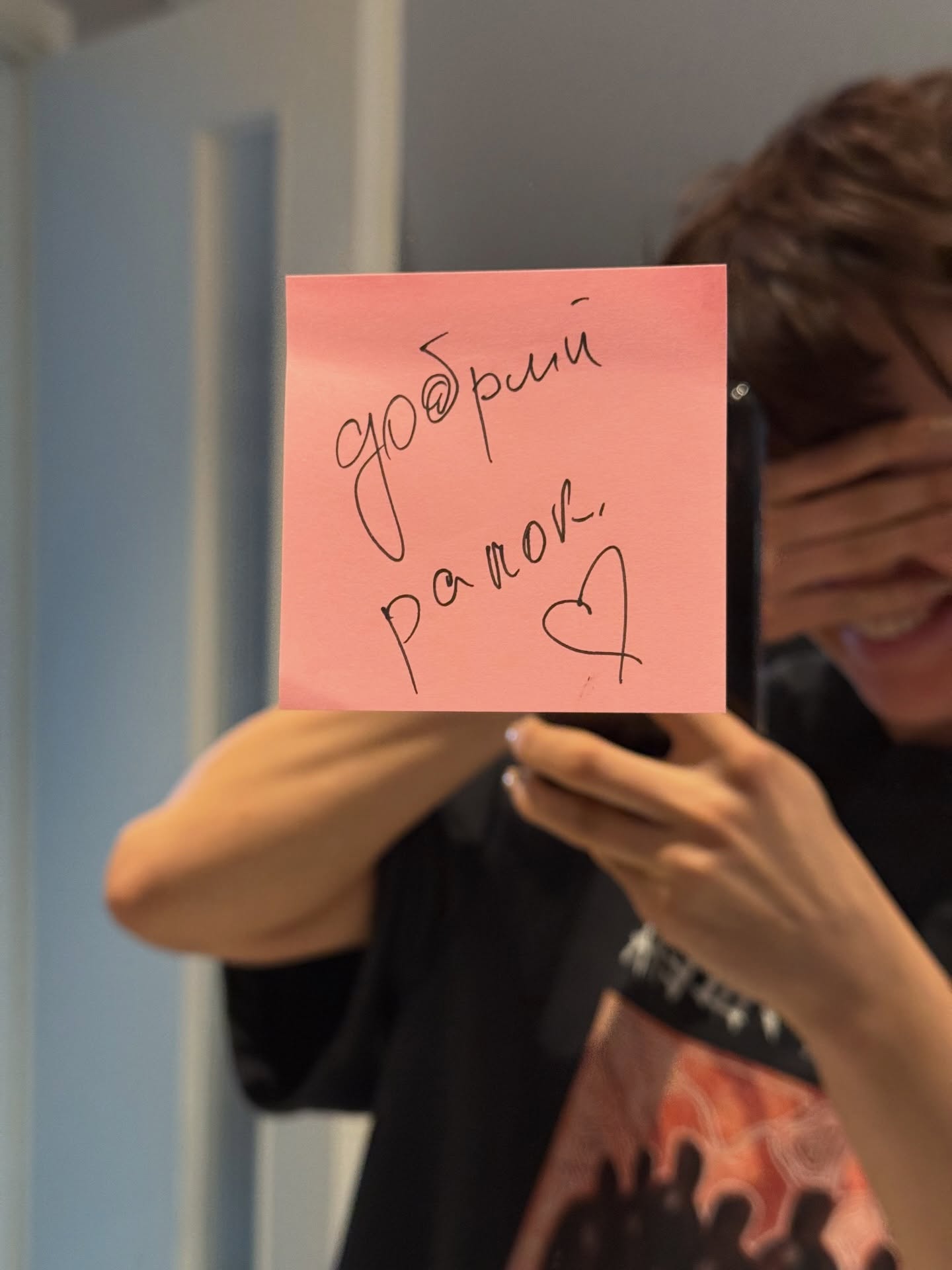 А ще співачка сфотографувала романтичний стікер, який знайшла на дзеркалі. Побажання доброго ранку з сердечком точно підіймало їй настрій.