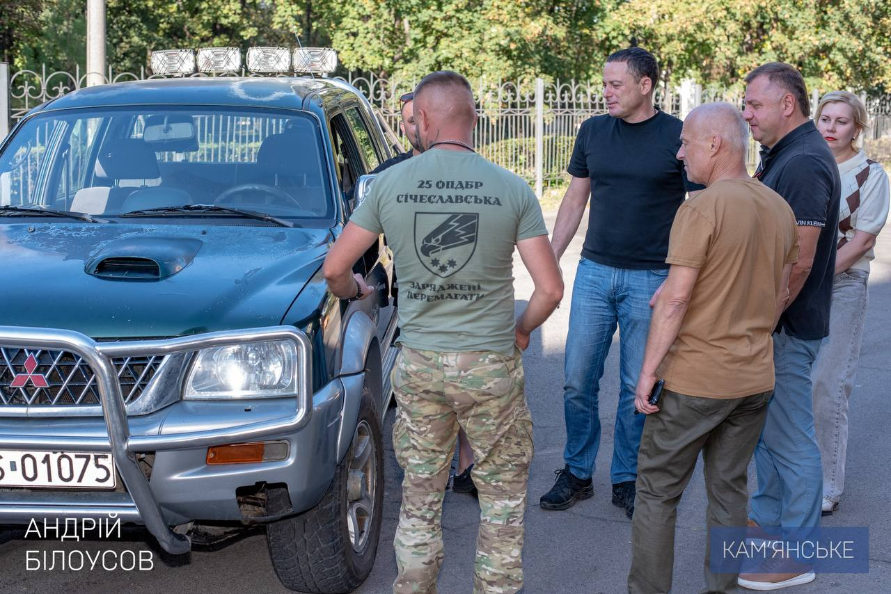 Мер Кам'янського Андрій Білоусов разом з громадською організацією "Бджола", благодійним фондом "Ми з Кам’янського", командою "Біофарма Плазма", Кам’янським відділенням благодійного фонду "Сприяння 25-й окремій повітрянодесантній Січеславській бригаді" та волонтером Олексієм Галіциним придбали пікап для нашого земляка — військовослужбовця 25-ї окремої Січеславської бригади.