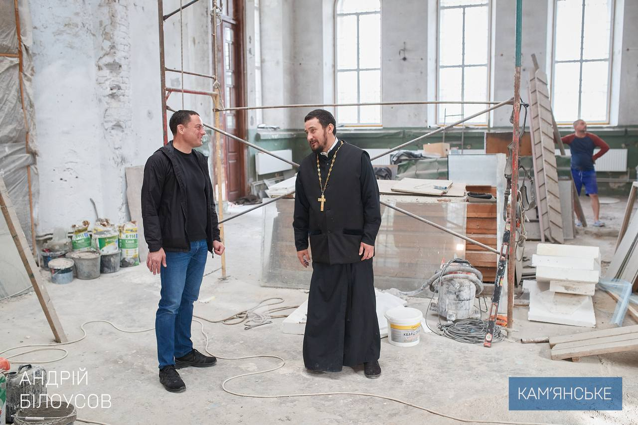 Учора, 16 вересня, мер Кам'янського Андрій Білоусов відвідав Свято-Миколаївський храм Православної Церкви України — унікальну духовну святиню та історичну пам’ятку нашого міста. Разом із настоятелем храму отцем Віталієм, оглянули, як просуваються відновлювальні роботи.