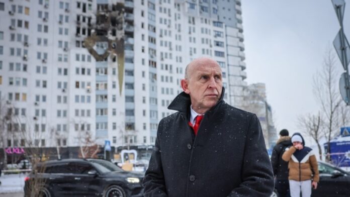 Новини Міністр оборони Британії Гілі у Києві відвідав одне з місць російського удару 09.01.2026 19:56 Джон Гілі заявив, що його сьогоднішній візит до Києва підкреслює рішучу підтримку Британією справедливого та тривалого миру