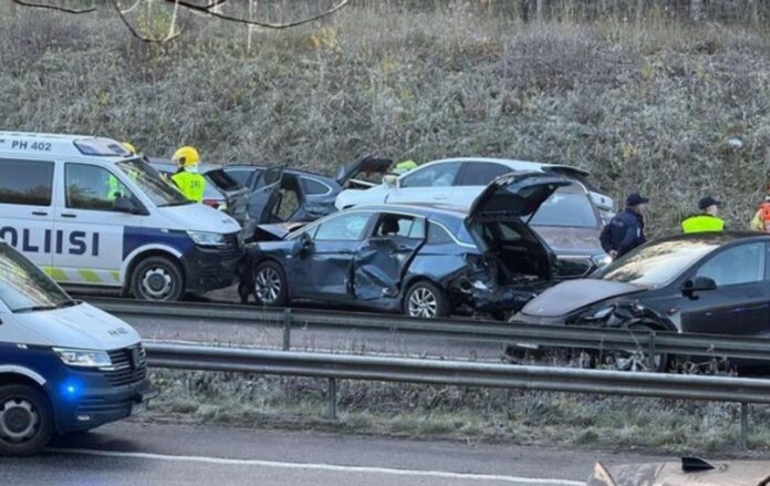 Ще одна ланцюгова аварія сталась уТампере: зіткнулись 15 автомобілів. Постраждали 25 людей.