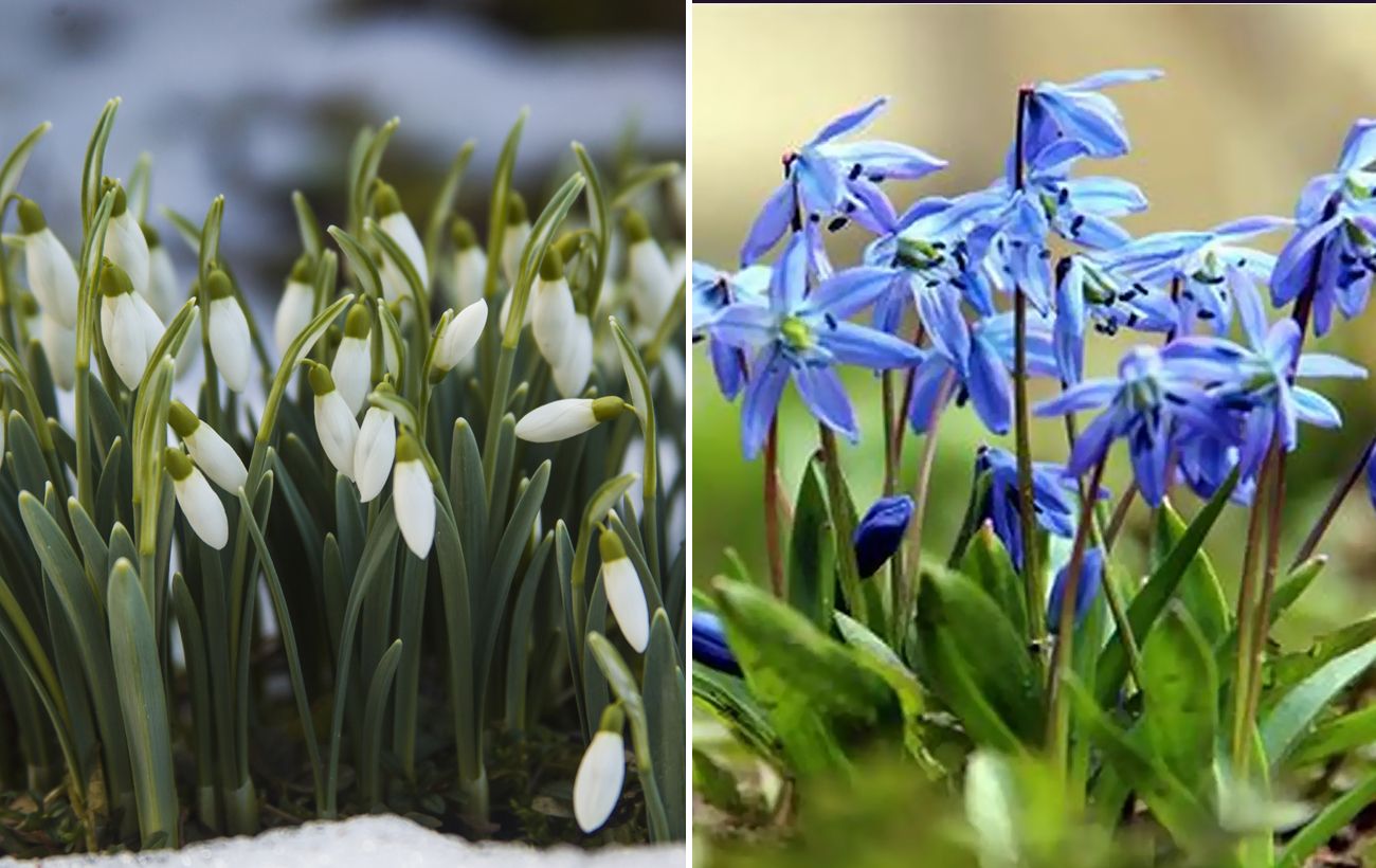 Підсніжник цвіте першим – ще по снігу, він білий і занесений до Червоної книги. Пролісок з'являється на місяць пізніше, він синій і значно поширеніший.