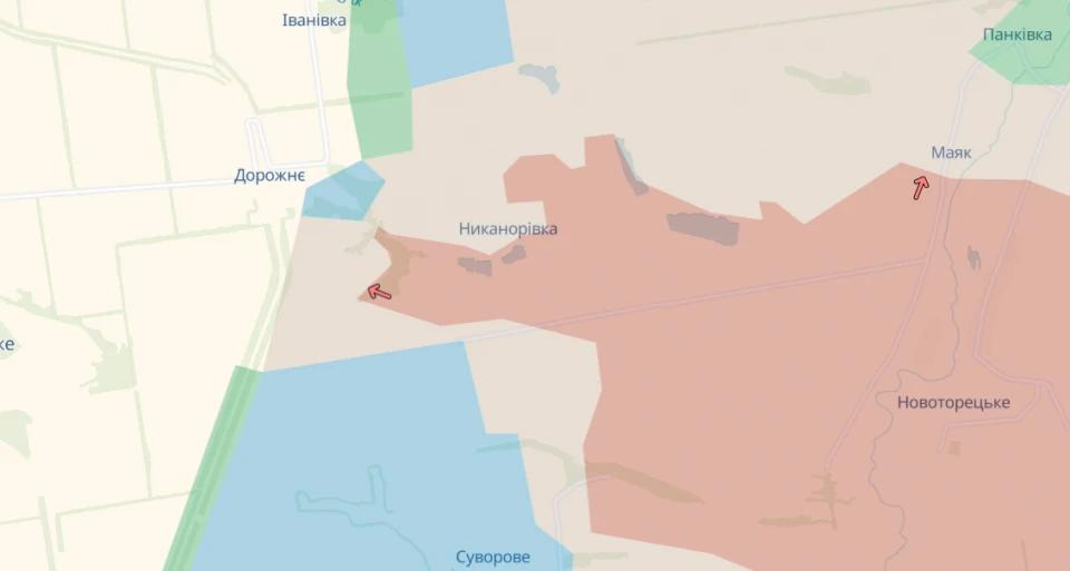 Крім того, аналітики фіксують просування російських сил у двох населених пунктах Донецької області — селах Одрадне та Злагода. Також уточнено оперативну обстановку в районі Никанорівки, де тривають активні бойові дії.