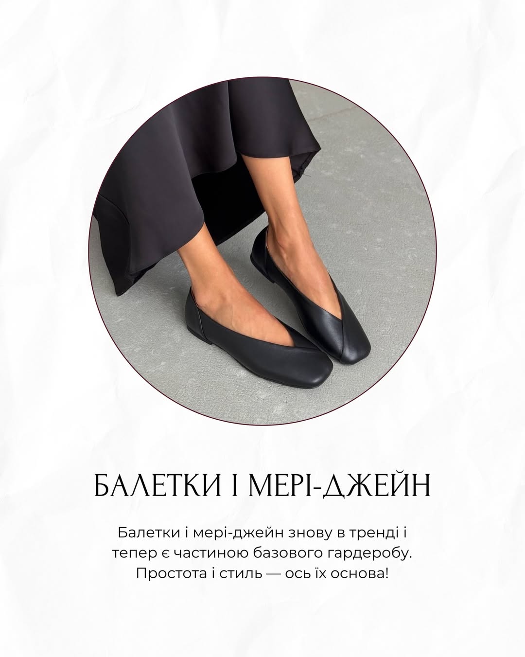 У 2026 році до базового гардероба повертаються балетки та туфлі Мері-Джейн. Вони поєднують простоту та стиль, стаючи універсальним взуттям для офісу, прогулянки та вечірніх виходів у теплу пору року.