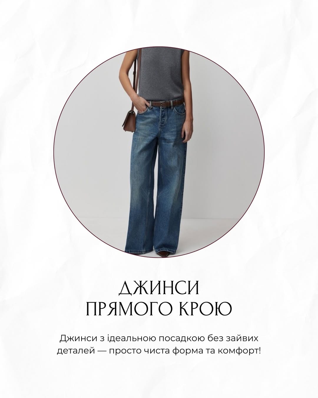 Прямий крій залишається трендом у джинсах. Чиста форма та комфорт – головні критерії вибору. Мінімум декору та ідеальна посадка роблять такі джинси універсальними для будь-якого образу.