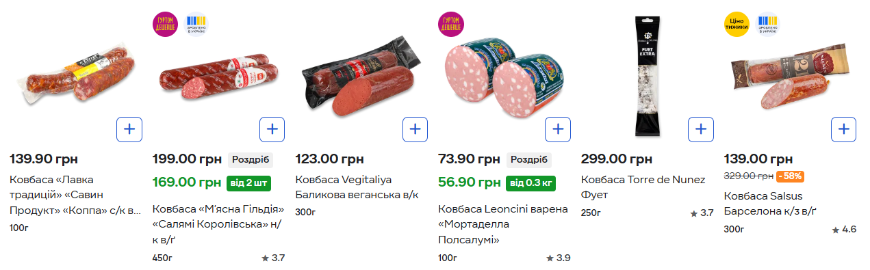 - салямі – від 169 грн за 450 г;