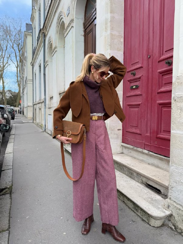 - З відтінками коричневого та бордо. Рожевий пом’якшує строгість коричневого пальта або теракотових штанів.