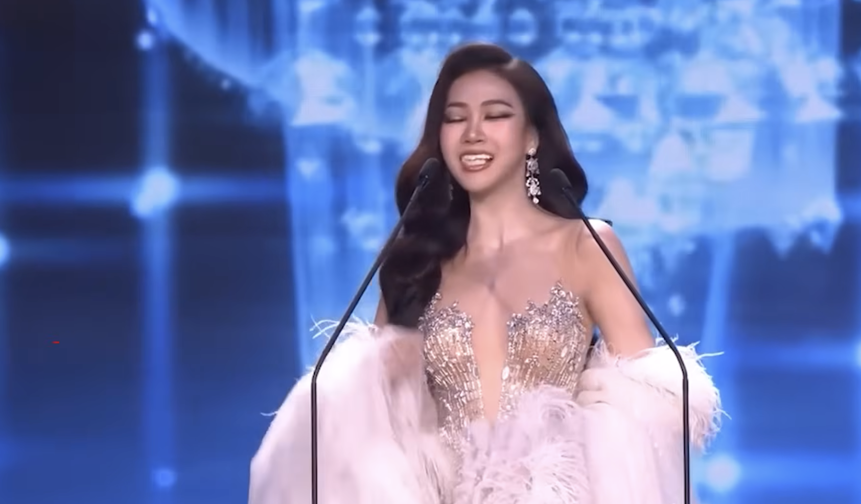 У цей момент Камолван Чанаго виступала з промовою на сцені, коли її верхні вініри змістилися просто в роті, через що її слова на мить стали нерозбірливими.