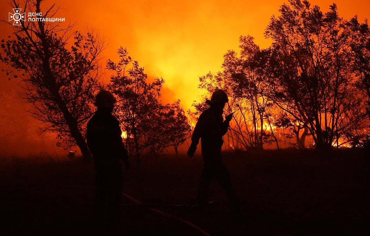 У неділю, 15 вересня, рятувальники ДСНС отримали повідомлення про загоряння, зафіксоване між кількома селами Полтавської області. До гасіння масштабної лісової пожежі залучено понад 400 осіб і 67 одиниць техніки.