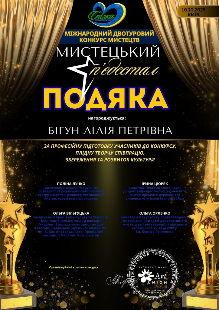 Особливої відзнаки було удостоєно Евеліну Удовицьку. За рішенням журі ученицю класу скрипки було нагороджено дипломом лауреата І премії.