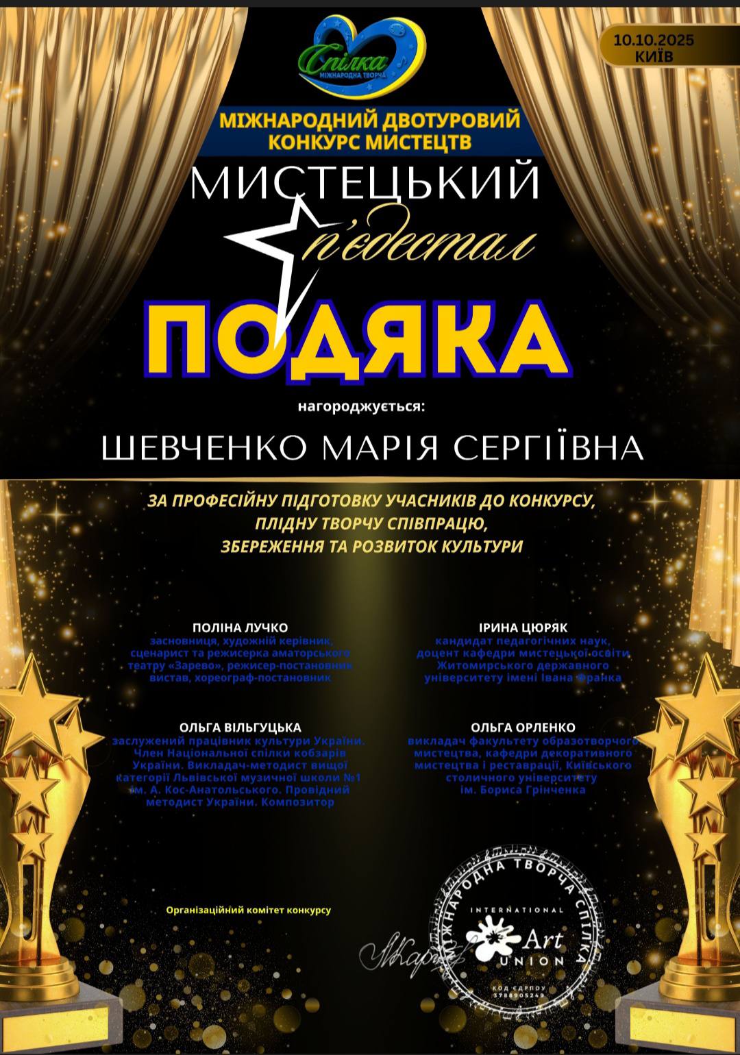 В Art Union відзначили появу нових облич, сміливих ідей, а також презентацію цікавих робіт у всіх заявлених номінаціях. Кожна представлена творчість стала вагомим доказом того, що мистецтво живе та динамічно розвивається. Кожен виступ, картина, пісня, хореографічний номер чи будь-яка інша творча робота є невід’ємною частинкою великої спільної мистецької історії.