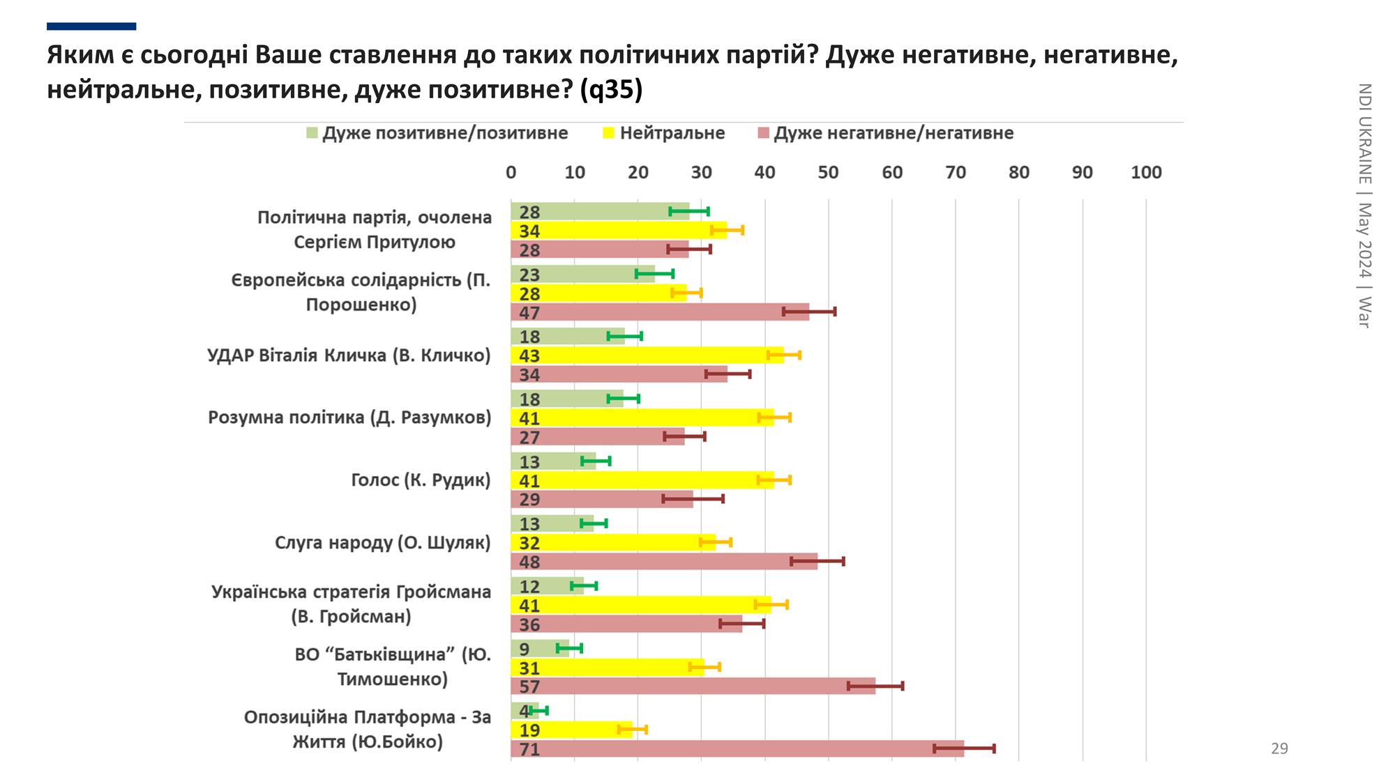 За даними опитування, 28% респондентів висловили позитивне ставлення до неіснуючої партії, очоленої телеведучим Сергієм Притулою, негативне – також 28%.