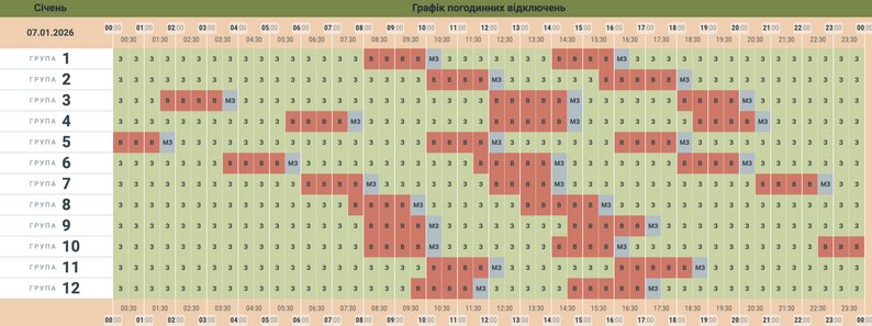 "7 січня в усіх регіонах України будуть застосовуватися графіки погодинних відключень… Коли електроенергія з'являється за графіком, будь ласка, споживайте її дбайливо", – закликали в у компанії.