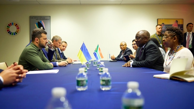 Новини Зеленський зустрівся з Рамафосою у Нью-Йорку: ПАР готова прийняти зустріч на рівні лідерів 24.09.2025 19:13 Зеленський обговорив із Рамафосою ситуацію на фронті та посилення ударів РФ